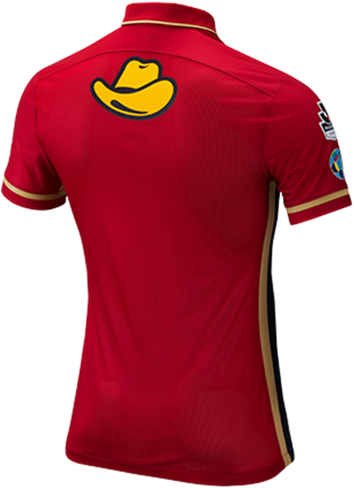 ホームは今年がクラブ創立25周年ということで、ディープレッドとネイビーによる大胆な切り替えしデザインを採用。アクセントカラーには、『常勝軍団』『王者』を思わせるビクトリーゴールドを用いている。