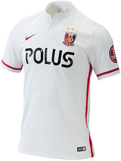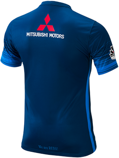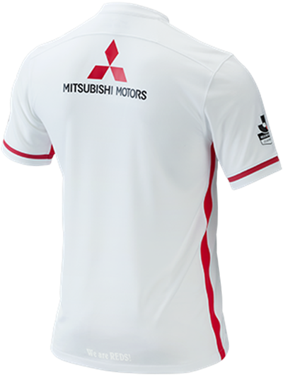 首元や袖、ユニフォームシャツとパンツのサイドを、クラブカラーである赤のラインで繋ぐことにより、アウェイの地でも躍動する浦和レッズの魂を表現している。