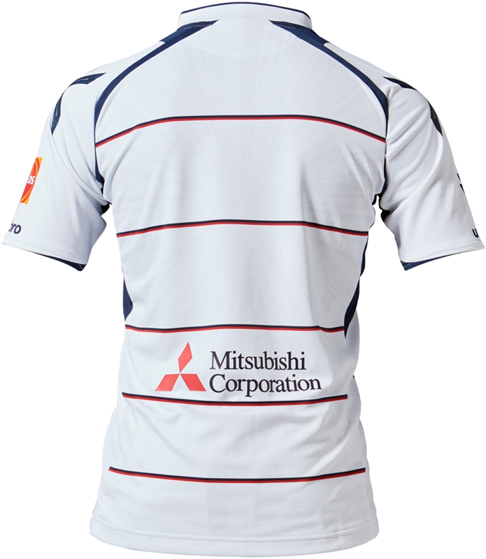 今季のコンセプトは『“EX(エックス)-energy(エナジー)=みなぎる力” ~東京から世界へ~』で、アウェイは定番の白を基調に、都会的でスタイリッシュなピンボーダーを紺と赤の配色でプリント。