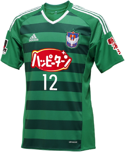 これはクラブの前身である「新潟イレブンサッカークラブ」に由来するデザインで、『伝統』を意識した復刻型のユニフォーム。そこに、現代サッカーの『革新』的なデザイン性を加えている。