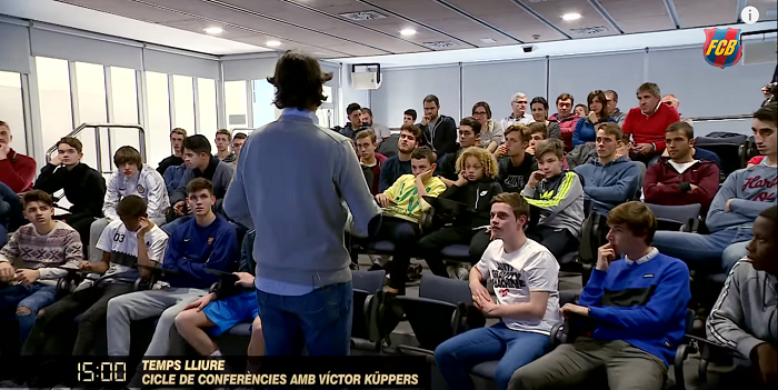 バルセロナのカンテラでは基本的に年齢別にチームが分かれているが、世代を超えたミーティングも行われるらしい。