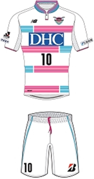 アウェイ(2nd)は白を基調に、「冷静さ」を表す青と「柔軟さ」を表すピンクの11本のラインが一つとなったアレンジボーダー柄。