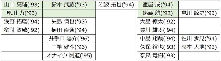 選手名の後ろにつけたのが、それぞれが該当する世代だ。1993年4月から1994年3月までに生まれた選手は('93)、1994年4月から1995年3月までに生まれた選手は('95)という感じにしている。