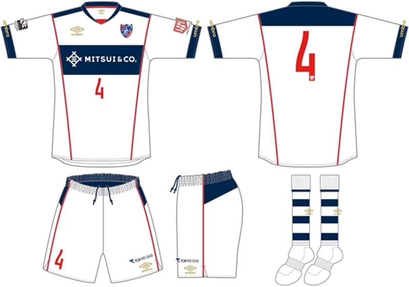 アウェイ(2nd)もホームと同じテンプレートで、こちらは白を基調にしたデザイン。通常のアウェイ同様、紺と赤を組み合わせている。