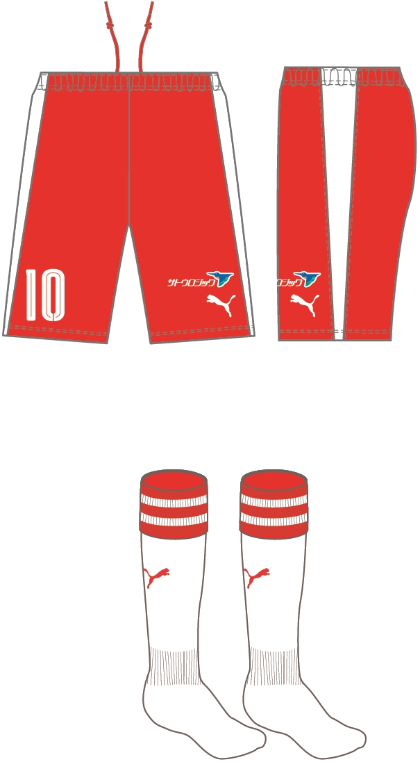 アウェイ(2nd)は白を基調に、赤を配したPuma伝統の「アパレルフォームストライプ」が印象的なデザイン。ホームと同じくヘンリーネックを採用している。