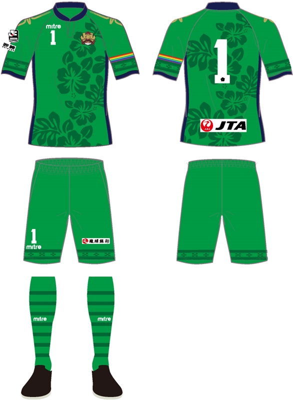 ホームに緑、アウェイに黄色を採用したGKユニフォームは、「沖縄の花」といっても過言ではないハイビスカス柄を大胆に配置。