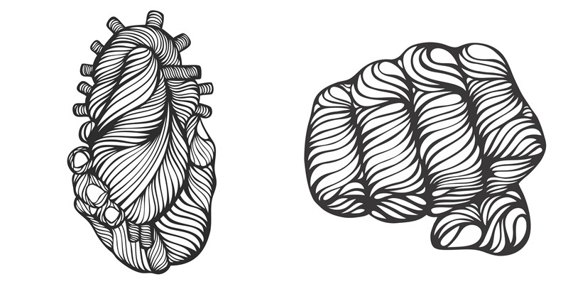 「OusadiaとAlegriaのそれぞれを表現する2つのイメージを作りました。それぞれ、心臓と手を描いています。直接的なメッセージを描くより、このようなグラフィックで表現したことが面白いと思います」