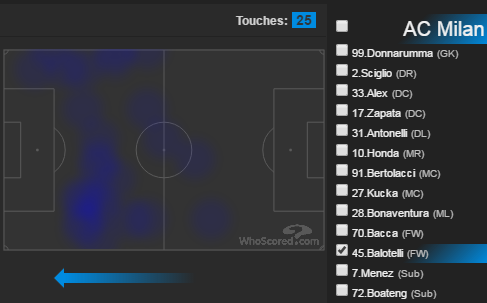 これを見ると、バロテッリは相手ボックス内に一度も入っていなかったようだ。気になってみたので、他の情報も調べてみた。