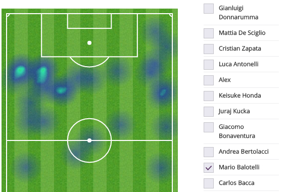 さて、この一戦に先発から55分間プレーしたミランFWマリオ・バロテッリのヒートマップが話題になっている。それがこちら。