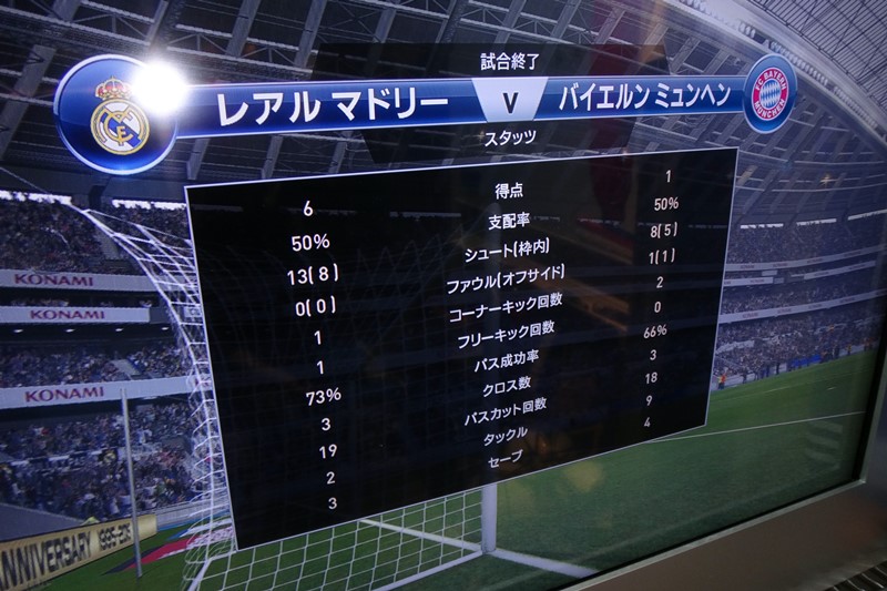 結果は、2-1でなんとか勝利。画面に反射してしまうためフラッシュをたかなかったところ、悲しい雰囲気も演出できたという結果オーライである。