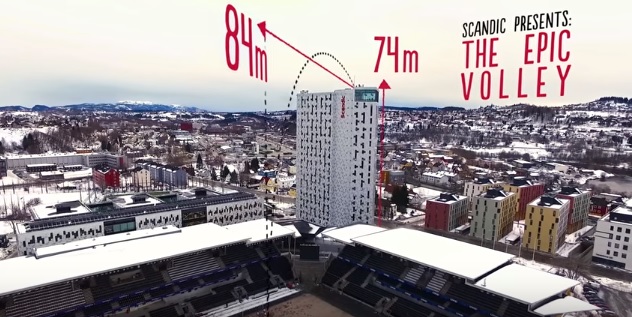 ローゼンボリのホームであるレルケンダール・スタディオンに隣接する『スカンディック・ホテル』の屋上からボールを蹴って、それを地上でボレーシュートするというもの!