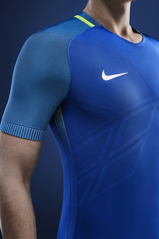 ブラジルの場合、アウェイのソックスにグラデーションを採用しているのが特徴。青と水色のストライプはシャツの袖口にも使われている。