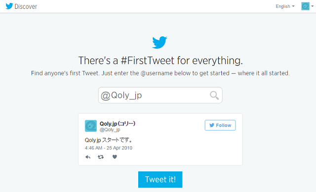 こちらは、それぞれのアカウントが初めてツイートした内容を検索できるツールだ。
