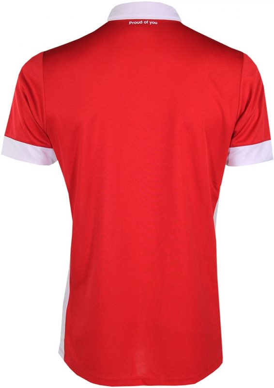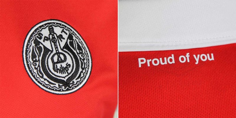 赤を基調としたポロネックのシンプルなデザインで、胸にはクラブの歴史に敬意を表し1937年まで使用されていた初代エンブレムが入れられている。