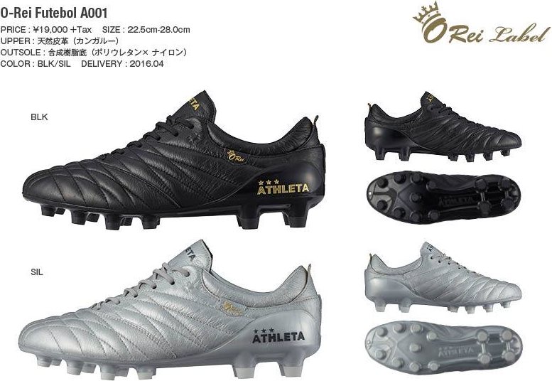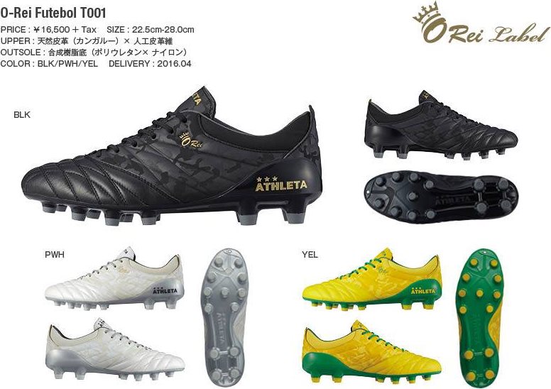 ポルトガル語で「王様」を意味し、成熟した大人向けの新レーベルとして立ち上げられた「O-Rei(オー・ヘイ)」。サッカーのスパイクでは、アッパーに天然皮革を採用した『O-Rei Futebol A001』、そして人工皮革+天然皮革の『O-Rei Futebol T001』の2モデルが登場した。