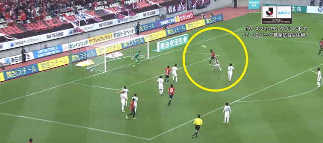 1-1で迎えた57分、金崎夢生とのパス交換からカイオがドリブル突破で左サイドの深いところまで進入すると、右足でクロス。