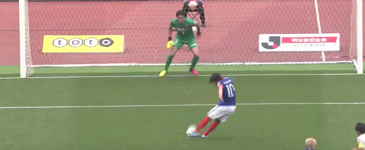 しかし中村は、“例え反応されても届かないコース”にきっちりと蹴り、日本代表経験もある林卓人からゴールを決めて見せたのだ。キックの技術に相当な自信のある選手だけができる、まさに職人技である。