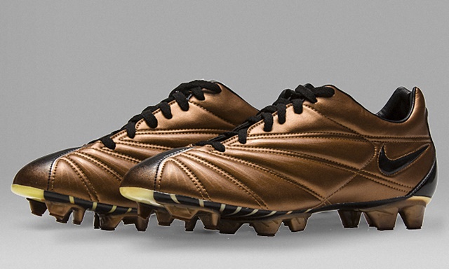 高い機能性の証しとして5つのドットを製品に刻んだ、ナイキ アルファプロジェクトの一つとして、2000 ナイキ マッチ マーキュリアルは発売されました。メタリックコパーのKNG-100は爪先に向かってブラックへと変化します。この製品の5つのドットは、「What the Mercurial」にもメタリックゴールドグロスで表現されています。