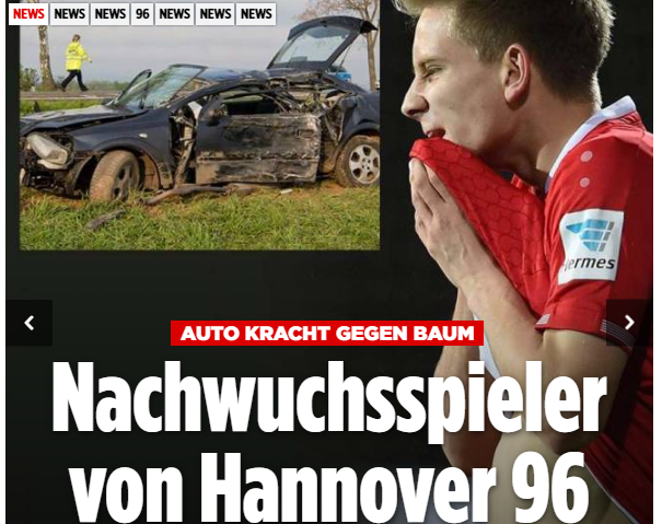 『Bild』によれば、事故は日曜日の早朝に起きたそうで、彼を含めて3人の若者が亡くなったという。