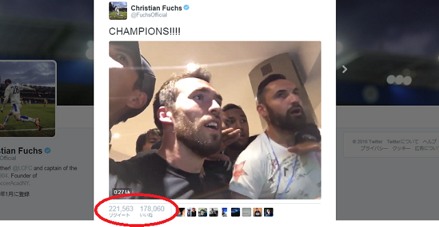 ちなみに優勝決定後、レスター公式が最初に投稿したこちらのツイートはすでに40万RTを超えている。