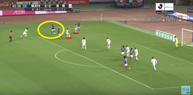 さらに齋藤学も後方から走りこみ、奈良輪と菊池は横浜FMの両選手に対応せざるをえなくなった。
