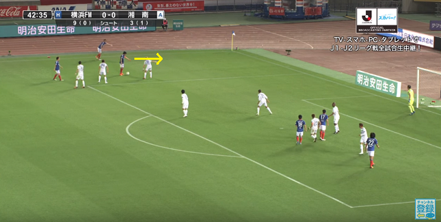 この時、中村に対しては湘南の菊池大介と奈良輪雄太が挟みこむように対応していた。