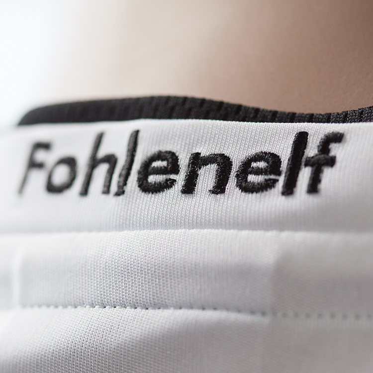 背面の襟下に入れられた『Fohlenelf』はクラブの愛称で「仔馬」を意味する。