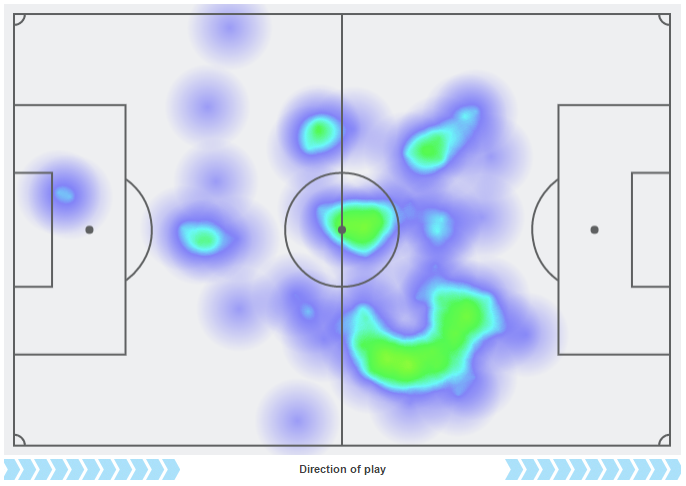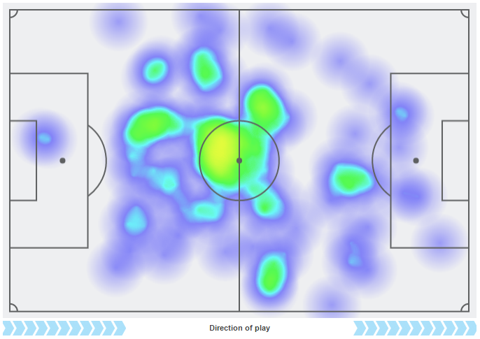 こちらは、1日に行われたプレミアリーグ・サウサンプトン戦でのもの。普段は行動範囲がかなり広いことがわかる。