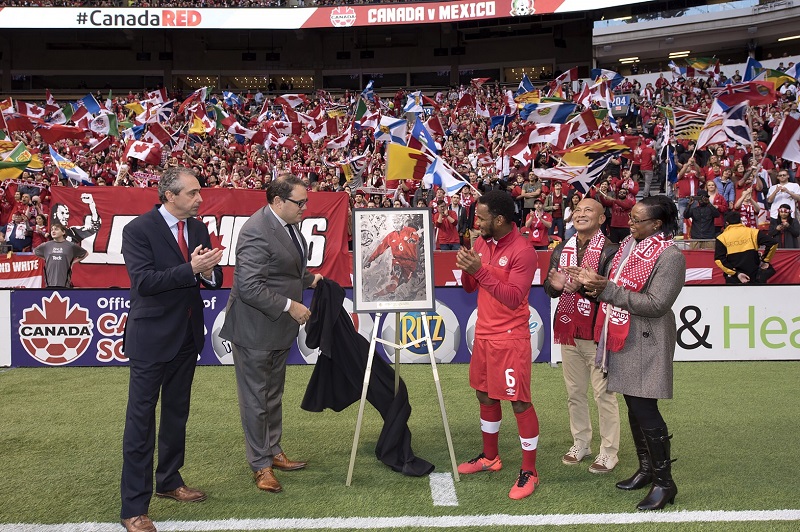 マルコ・ディ・ヴァイオの引退試合セレモニーでマルコの絵をコラボレートしたり、ジュリアン・デ・グズマン(カナダ代表)の記念セレモニーに絵を贈呈したりしましたね。俺の中では初めてのコラボレートだったので、これらの経験はとても大きいものでした。ギャラリーじゃなくてスタジアムで披露したから凄くいい経験をしました。