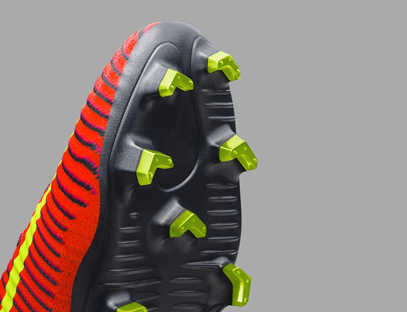 Nikeのデザインチームは、様々なトラクションパターンでスタッドの形状や角度をテスト。仮想有限要素分析(FEA)試験手法などを初めて用いるなど最新技術を屈指し、直線的なダッシュを行うスピード重視型のプレーヤーにとって最適なトラクションパターンを割り出した。