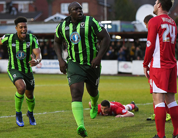 ウィンブルドンといえば、巨漢FWアデバヨ・アキンフェンワだ。34歳になったばかりの“野獣”は、アクリントン・スタンリー戦でも価値あるゴールを決めた。