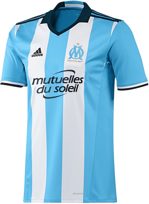 ホームとアウェイは脇にスリーストライプス。マルセイユにしては色合いが渋め?