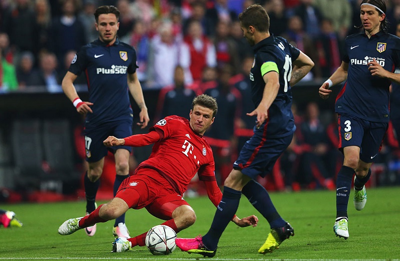 上記は、バイエルン・ミュンヘン戦でトーマス・ミュラーを3人で囲んでいるシーンだ。このようなシーンは、アトレティコ・マドリーの守備において基本となっている。