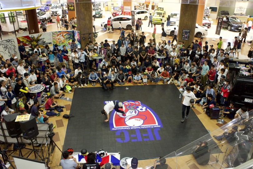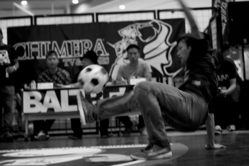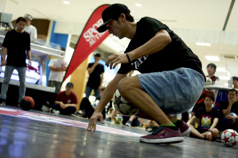 プレーヤーたちはDJの音楽を合図に、とても人間業とは思えない技を応酬させバチバチにやりあう。技だけでなく、闘争心剥き出しの表情で、ひたすら観客を盛り上げるリアクションで、唯一のスタイルで。様々なかたちでオーディエンスを魅了する。この30秒に辿り着くまでに、一体どれだけの時間を費やしたんだろう?フリースタイルフットボールの醍醐味を余すところなく味わえる空間となっていた。