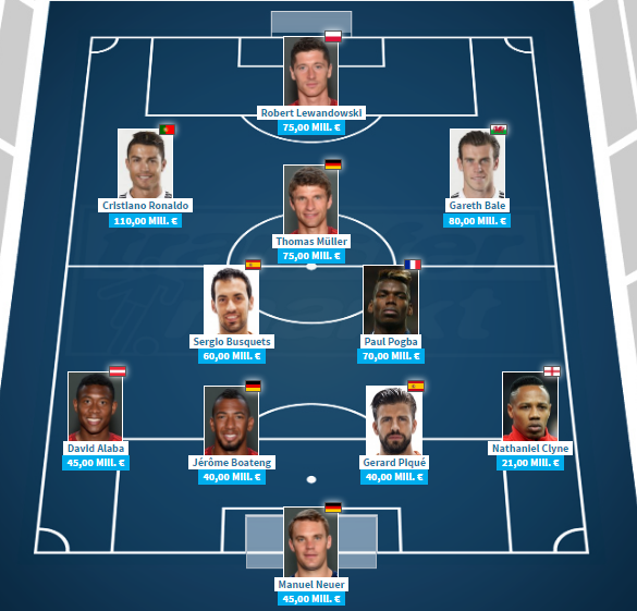 ここでは、『Transfermarkt』を参考に、「参加全選手のなかで、ポジションごとに最も市場価値の高いベストイレブン」を見てみる。