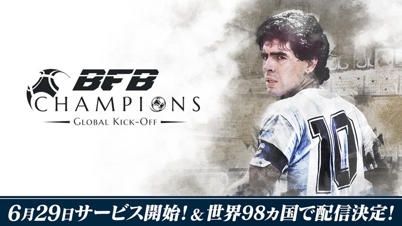 ディエゴ・マラドーナがイメージキャラクターを務めることで話題の「BFB」シリーズ最新作、『BFB Champions~Global Kick-Off~』。そのサービス開始が、6月29日(水)に決まったことを株式会社サイバードが発表した。