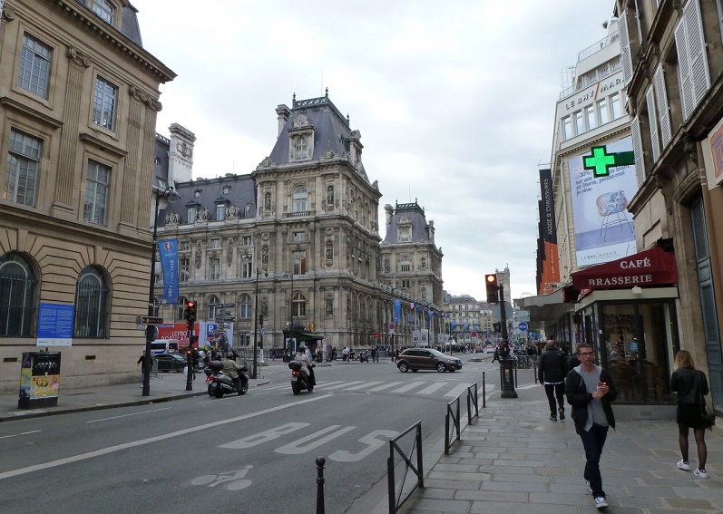 上記画像のように左のパリ市庁舎が目に入ったら、左方向へ移動。すると下記画像の通りを道なりに進むと左側にジバンシィが見えてくる。
