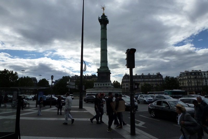 バスティーユ広場を象徴する7月革命の記念柱が見えてきたら、リヴォリ通りを目指して進む。リヴォリ通りに入ったら、道なりに歩く。