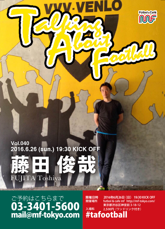 6月26日(日)に原宿のサッカー&カフェ「mf」で行われるトークイベント、『Talking About Football』の第40回についてご紹介します。