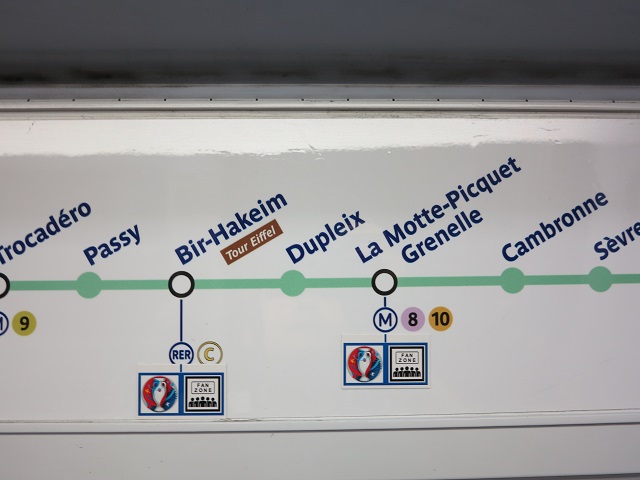 メトロの路線図には、ファンゾーン設置会場の最寄り駅にこのようなシールが貼られているのですぐに分かる。