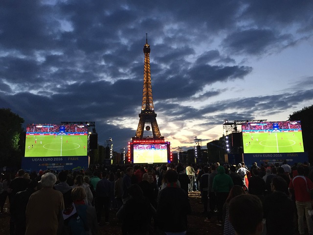 そう、あのエッフェル塔をバックに超巨大スクリーンで試合観戦できちゃうのだ!