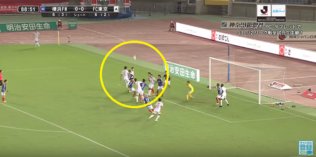 0-0で迎えた89分、小川諒也のコーナーキックに合わせるべくFC東京の選手たちはそれぞれに動き出すのだが、森重は…