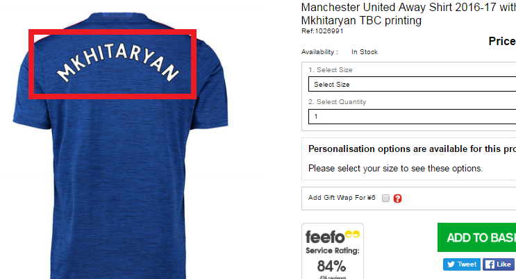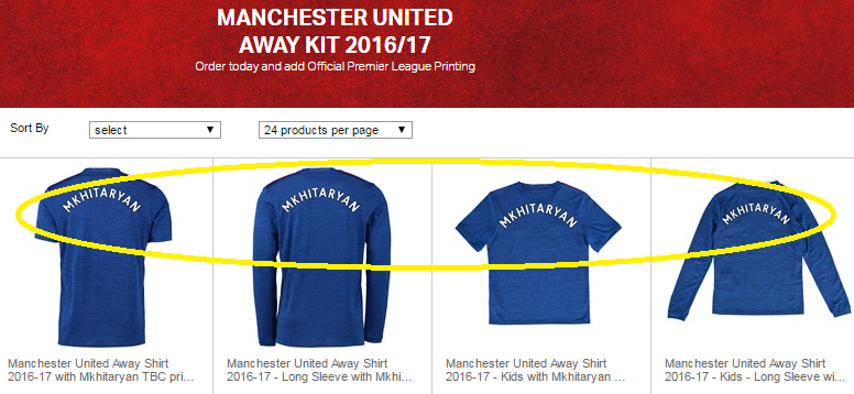 これは来季用の新アウェイユニフォーム類。まだ移籍決定の発表前だというのに、すでにムヒタリャンのネームが入ったものが売りに出されていたのだ。