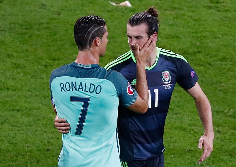 準決勝のウェールズ戦でギャレス・ベイルと握手。2人はクラブではチームメイトでもあるが、髪型は対照的だ。