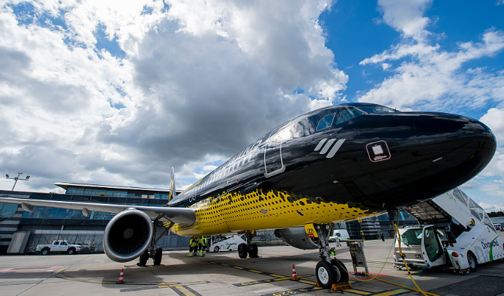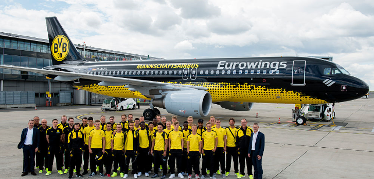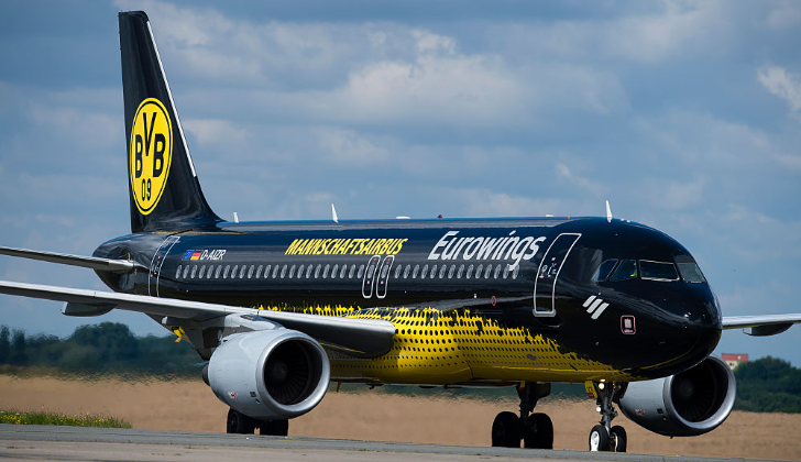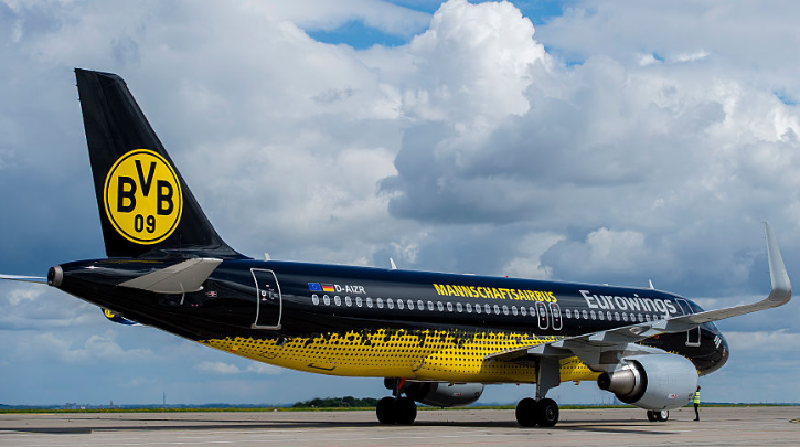 黒と黄色のドルトムントカラー!これは『Eurowings』社のエアバスA320という機体。