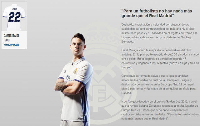 2016-17シーズンももちろんレアル・マドリーでプレーする予定であり、このほど公式サイトの選手紹介ページにも名前があったのだが…そこに写っていたイスコはまるで“別人”であった!