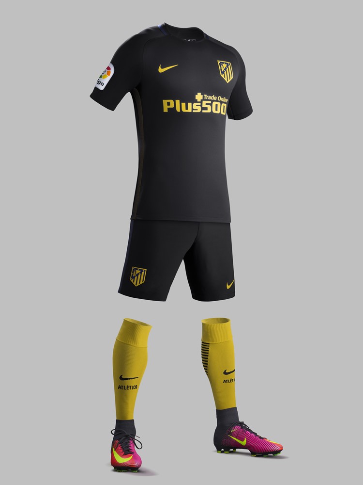 差し色に黄色を使用し、首元にもさりげなく紺のストライプを配置。Nikeの2016-17モデルらしくソックスは別カラーとなっている。