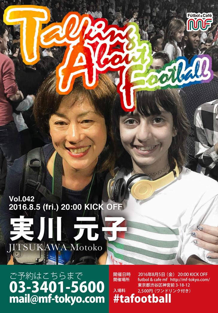 8月5日(金)に原宿のサッカー&カフェ「mf」で行われるトークイベント、『Talking About Football』の第42回についてご紹介します。
