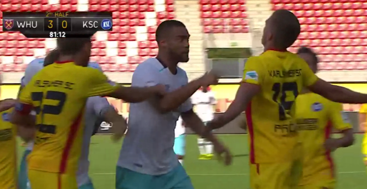 オーストリアで行われたウェストハム対カールスルーエのプレシーズンマッチで、痛ましいアクシデントが起きてしまった。