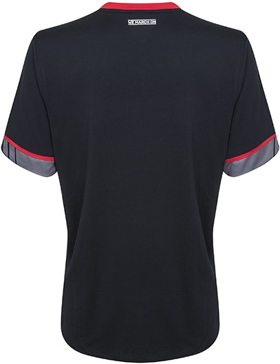 アウェイは黒を基調としたデザイン。ホームと同じテンプレートを使用しているが、こちらは袖口にストライプが配されている。